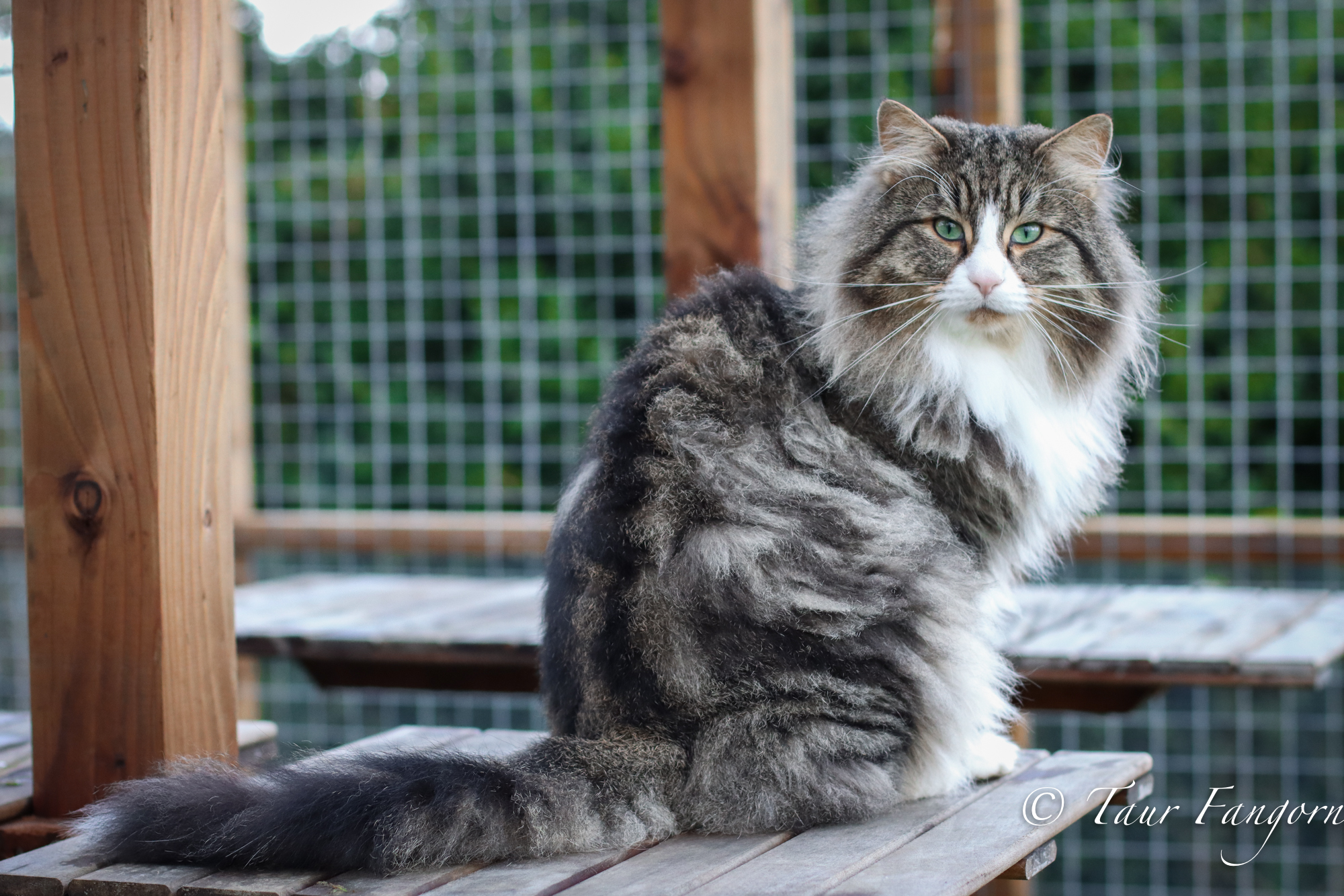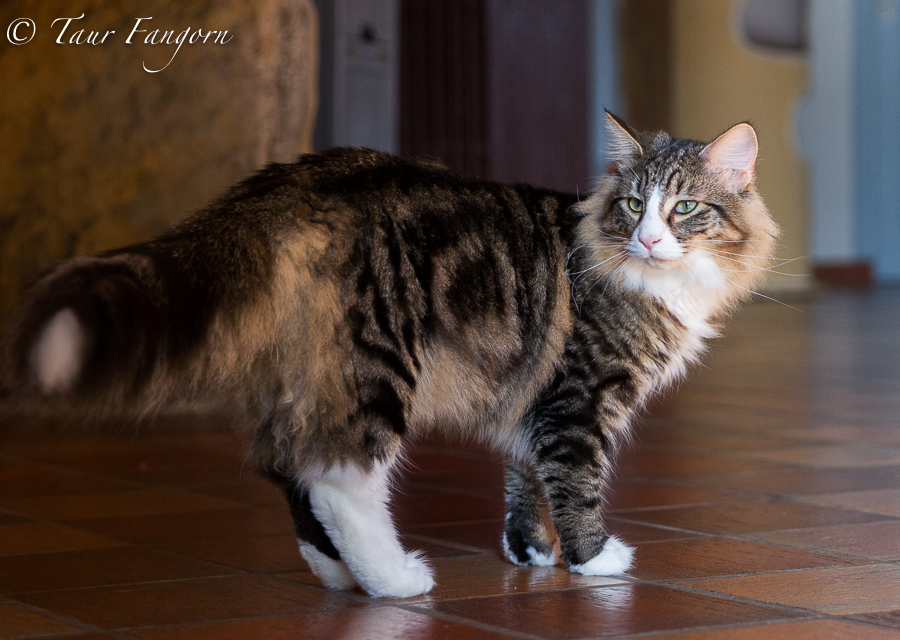 Otello nous a séduit par son type classique, très équilibré, ainsi que par son superbe pedigree basé sur d'anciennes lignées danoises connues pour leur stabilité. Otello est un matou au caractère doux et facile, il s'entend parfaitement bien avec nos autres mâles et est d'une gentillesse incroyable autant avec ses humains qu'avec les demoiselles. Parmi ses nombreuses qualités, nous apprécions tout particulièrement son front bien arrondi, ses magnifiques yeux verts, sa qualité de fourrure et, par dessus tout, son look reflétant la douceur de son caractère.